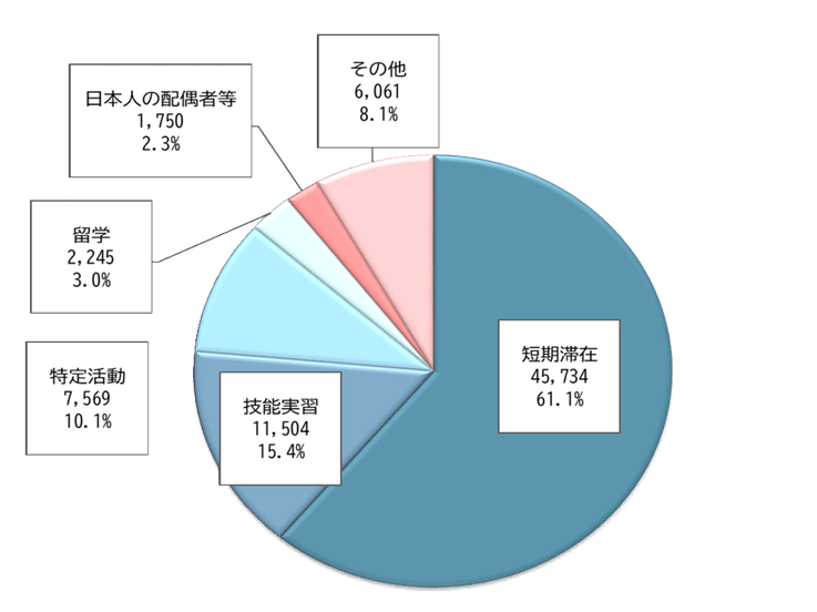 技能実習生の数が多いため、比例して不法残留者で占める割合も高くなっていると考えられます。